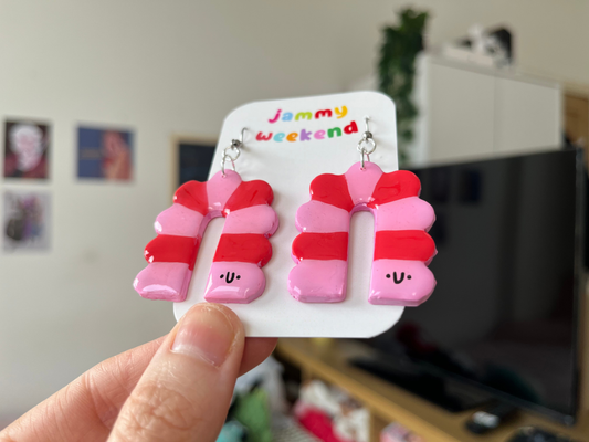 Pink and Red Caterpillar Polymer Clay Earrings