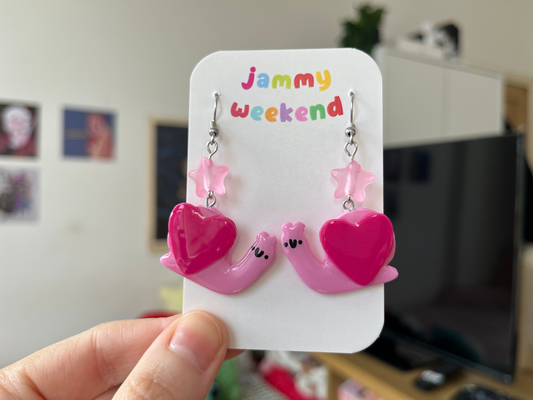 Valentines Snail with a Pink Heart Polymer Clay Earrings