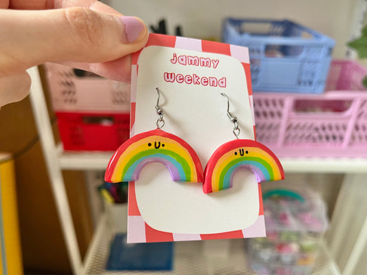 Rainbow Happy Face Polymer Clay Earrings