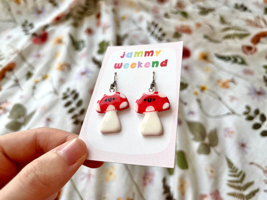 Mushroom Happy Face Cute Polymer Clay Earrings