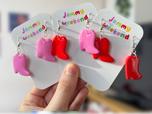 Pink and Red Cowboy Boots Polymer Clay Earrings